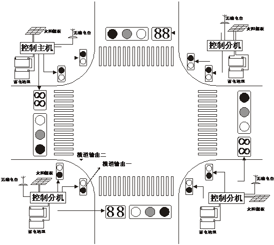 平行分布技術(shù),系統(tǒng)中四個(gè)街角控制系統(tǒng)完全獨(dú)立,結(jié)構(gòu)完全相同,每個(gè)街角控制器是主機(jī)或從機(jī)完全由用戶根據(jù)喜好和要求決定,從而降低了建設(shè)難度。