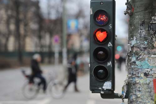2、柏林街頭的卡通交通信號(hào)燈與心形創(chuàng)意交通信號(hào)燈