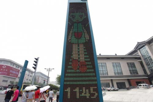 13、西安最萌LED紅綠燈,2012年7月17日,西安最萌LED紅綠燈亮相北大街。這個(gè)紅綠燈與以往不同,卡通人物為一個(gè)小女孩,綠燈亮?xí)r,小女孩倒計(jì)時(shí)報(bào)數(shù),紅燈亮?xí)r,小女孩播送文明提示語(yǔ)??ㄍt綠燈的出現(xiàn)得到了很多市民的贊許,并親切的稱(chēng)之為西安“最賣(mài)萌”紅綠燈。